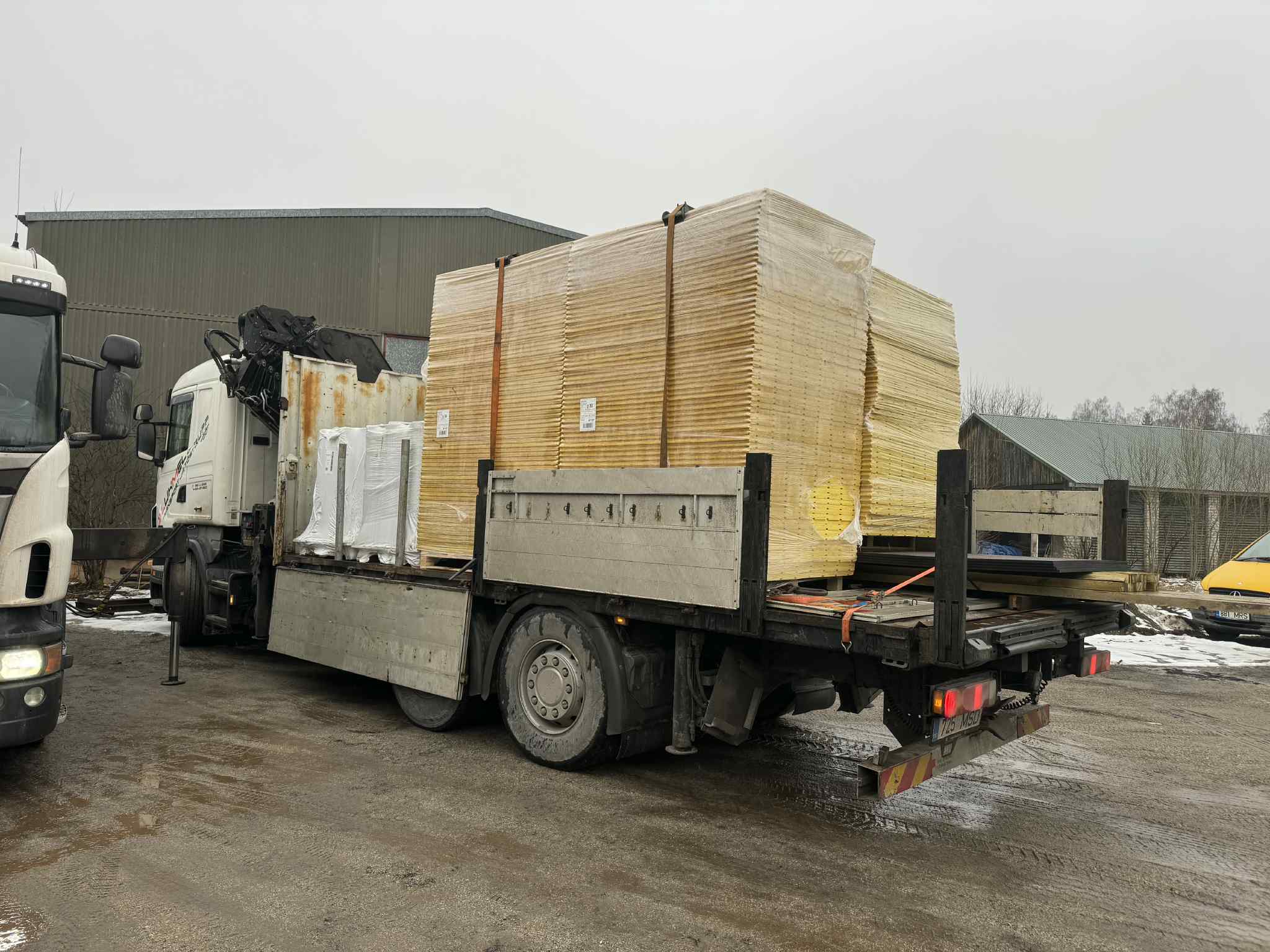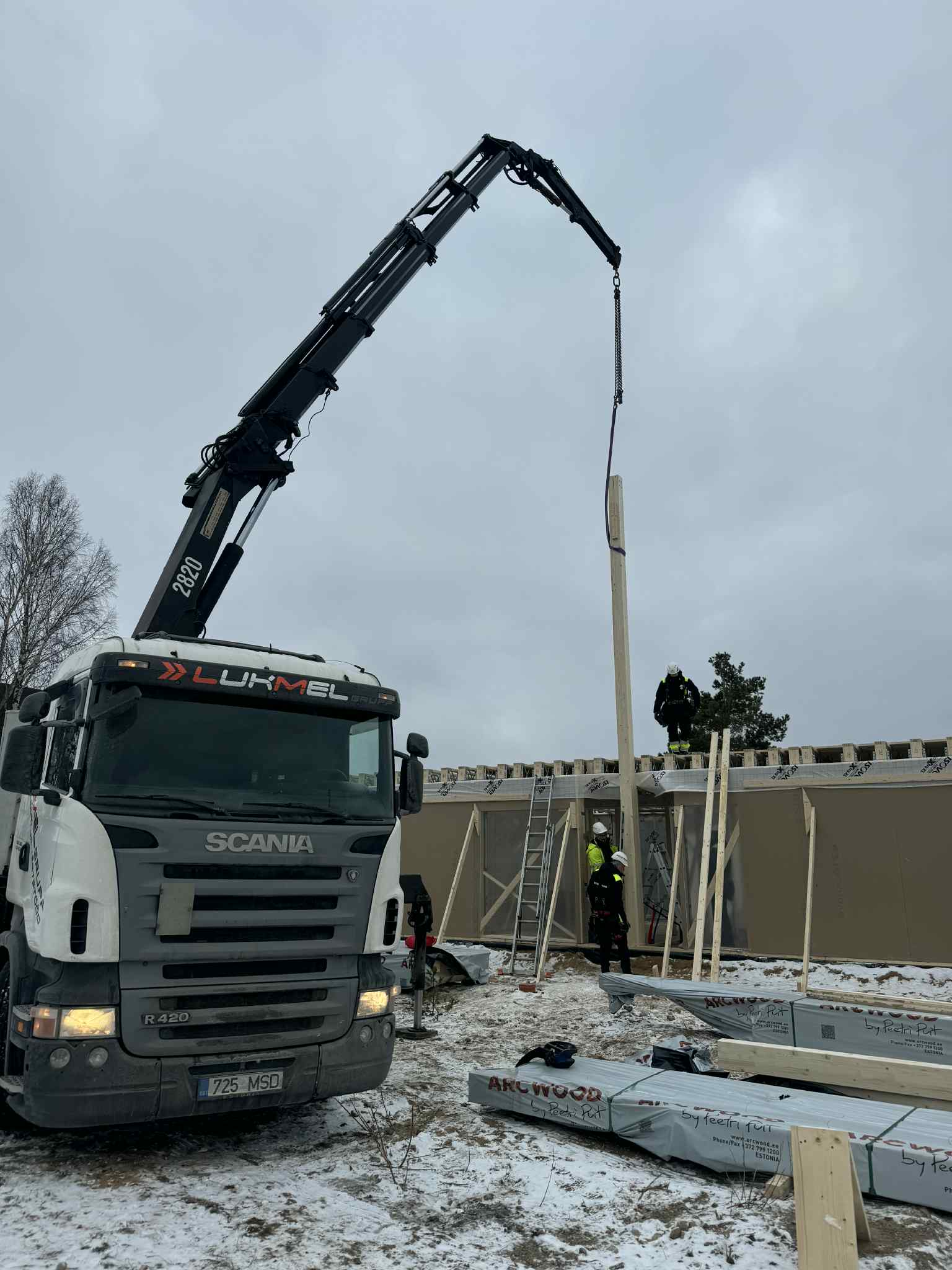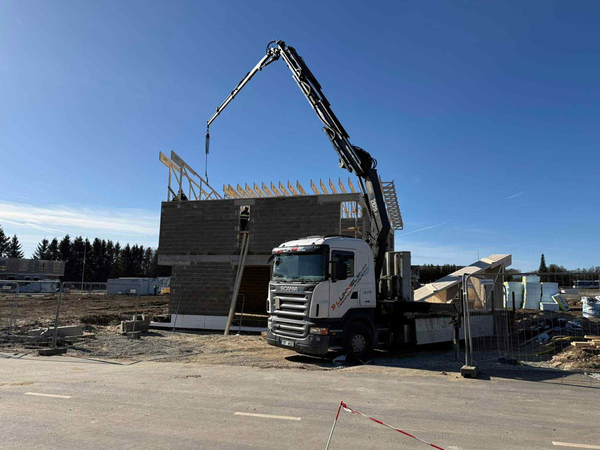 Sobime tellingute, ehitusmaterjalide, fermide ning majaelementide veoks ja paigalduseks.